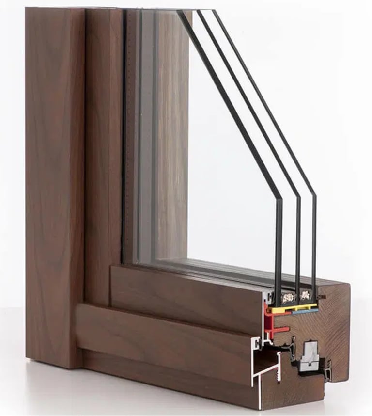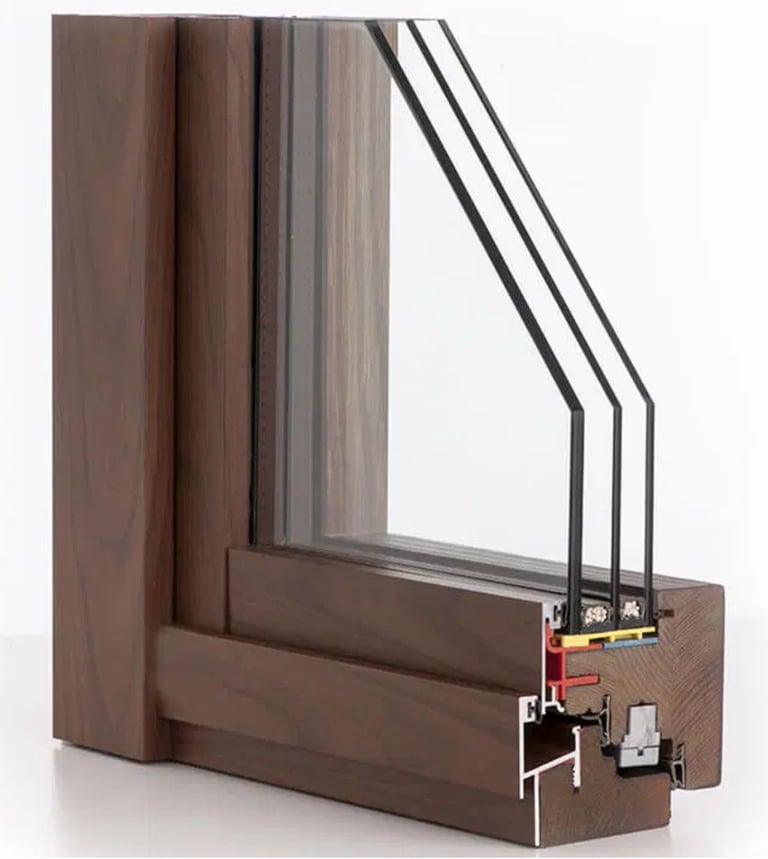 Un prodotto completamente in legno, rivestito all'esterno in alluminio. Bellezza naturale del legno all'interno con la protezione dell'alluminio verso l'esterno.